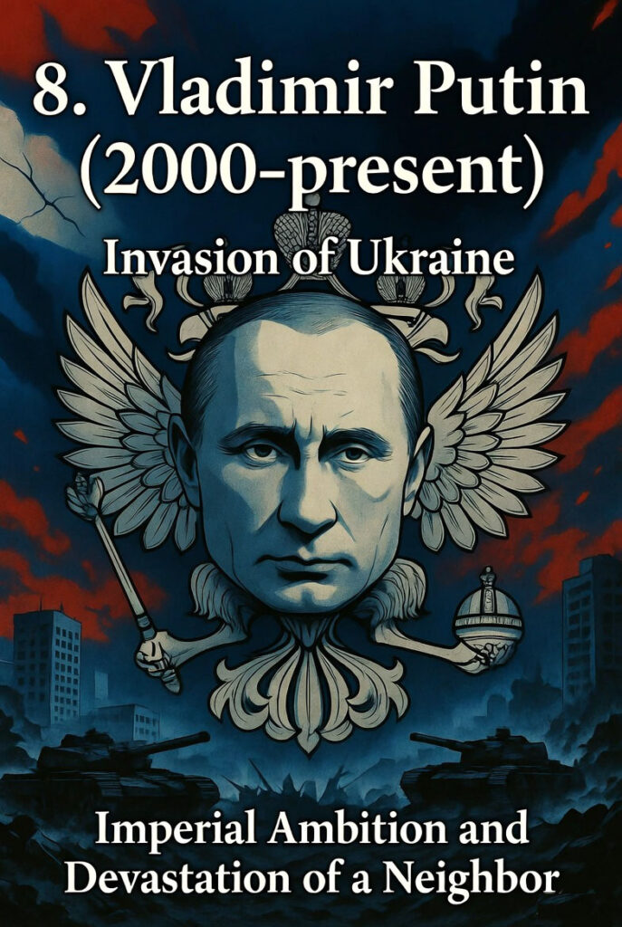 Vladimir Putin’s full-scale military invasion of Ukraine, launched on February 24, 2022, stands as one of the most significant acts of aggression in 21st-century Europe. Critics argue that this war exemplifies a ruthless leader’s willingness to sacrifice innocent lives to satisfy imperial ambitions and personal power. By targeting a militarily weaker sovereign nation, Putin has earned a place in many contemporary assessments as the 8th most ruthless ruler in history’s broader list of leaders linked to mass suffering. This ranking places him after the 20th-century totalitarian giants but ahead of several other modern authoritarian figures due to the scale of deliberate devastation inflicted on Ukraine and the threat his policies pose to smaller neighboring countries.